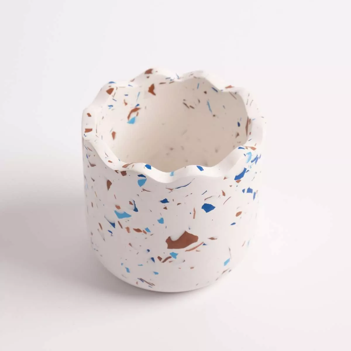Terrazzo Wavy Pot with colored chips is a unique piece of art. The handcrafted Terrazzo home decoration artifacts are impressive and elegant.